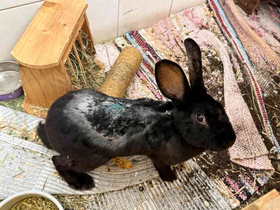 Midnight kam in extrem schlechtem Zustand als Fundkaninchen zu uns.