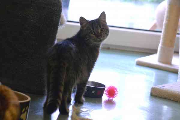 Ich bin eine sehr freundliche, aber auch vorsichtige Jungkatze. Bei vertrauten Personen schmuse ich was das Zeug hält, bei fremden Menschen bin ich eher zurückhaltend. Auch brauche ich eine Weile um mich an neuen Orten und in neuen Situationen zurecht zu finden - mit etwas Geduld, lustigem Spielzeug und leckeren Keksen komme ich aber schnell aus mir heraus.