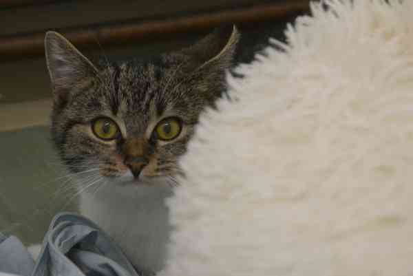 Leider hatte ich einen offenen Bruch, weshalb mein linkes Hinterbeinchen amputiert werden musste. Aber weißt du was? Es macht mir überhaupt nichts! Ich kann genauso gut klettern, springen und spielen wie meine Freunde hier im Tierheim.