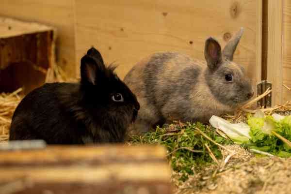 Wir sind zwei aufgeweckte und neugierige Jungkaninchen. Menschen finden wir noch etwas gruselig, wenn man sich aber Zeit nimmt und uns gute Leckereien bringt, tauen wir Schritt für Schritt auf.